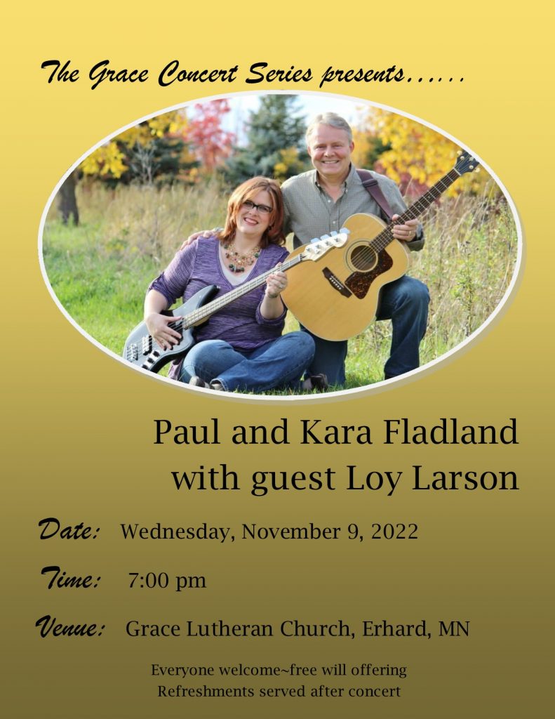 Paul & Kara Fladland w/guest Loy Larson – 7:00 PM [Click for Details] + Add to Google Calendar + iCal export Date Nov 09 2022 Time 7:00 pm Category Calendar Event [bws_pdfprint display='print']